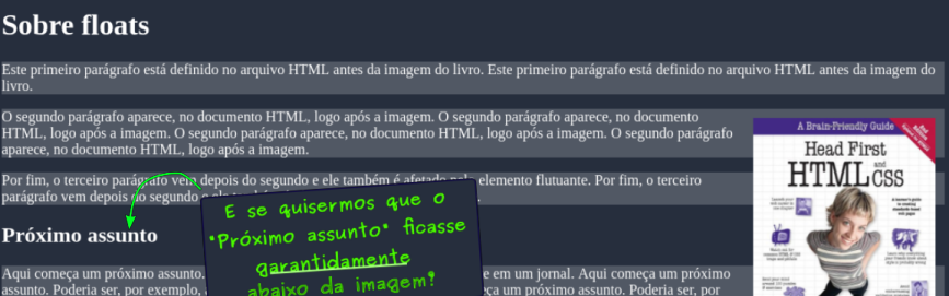 left ou right: interrompe apenas as flutuações à esquerda ou à direitaboth: interrompe ambos ladosnone: não interrompe (valor padrão)#proximo-assunto {