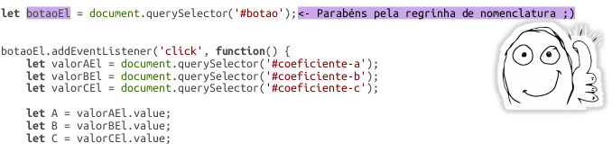 botaoDeliciaEl.addEventListener('click', function() { /* ... */ });