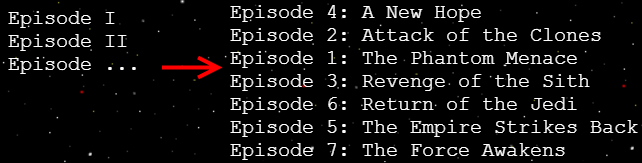 A ideia é que a lista de filmes fique ordenada do episódio 1 até o último, em ordem crescente.